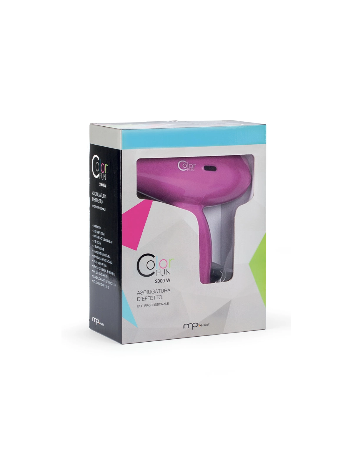 L'asciugacapelli Color Fun Fucsia con motore professionale AC da 2000W combina elevate prestazioni a un design compatto ed ergonomico. Progettato per un'asciugatura rapida e precisa, è ideale per l'uso frequente in salone. Il colore fucsia dona un tocco distintivo, perfetto per ambienti dinamici. Le due velocità, le tre impostazioni di temperatura e il tasto aria fredda consentono un controllo completo durante lo styling. I beccucci sagomati assicurano una distribuzione mirata del flusso d'aria.