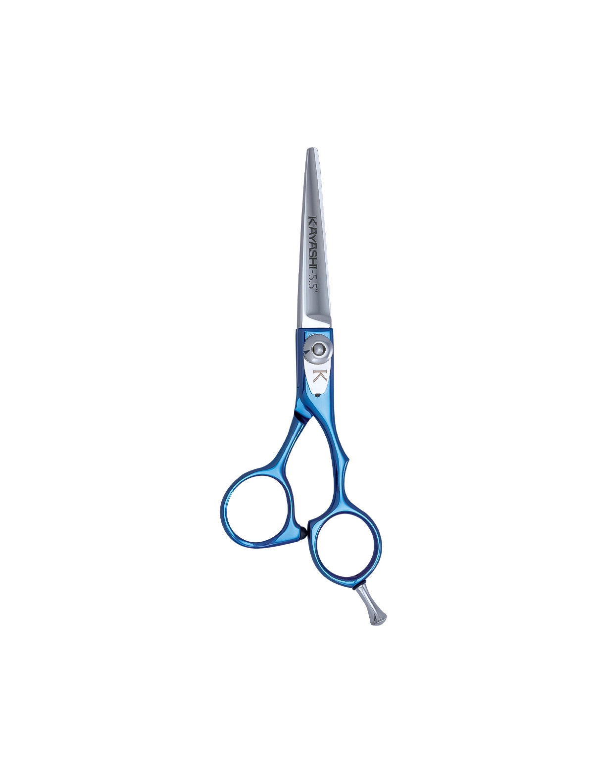 La forbice Blue Moon 5.5” si distingue per la sua impugnatura sfalsata con poggiadito svitabile, studiata per garantire una postura rilassata della mano. Il design moderno e funzionale assicura massima maneggevolezza, mentre il gommino silenziatore e gli anelli riduttori offrono comfort e controllo eccellenti.