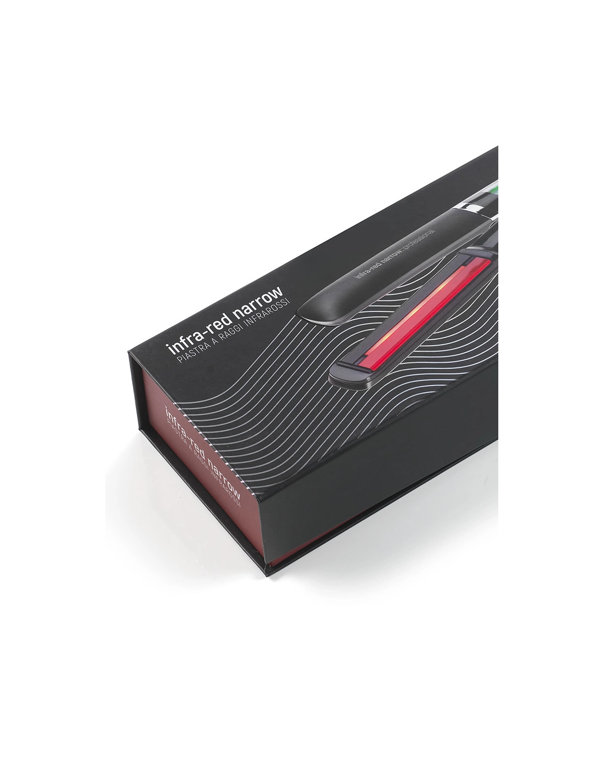 Infra-Red Narrow Professional è la piastra per capelli a infrarossi pensata per parrucchieri e saloni professionali che lavorano su tagli corti o su ciocche di precisione. I raggi infrarossi proteggono e riequilibrano il capello dall'interno, mentre i piatti stretti ionizzanti (Titanio nella parte superiore e Ceramica Tourmaline in quella inferiore) agiscono in sinergia per una piega duratura, luminosa e senza effetto crespo.