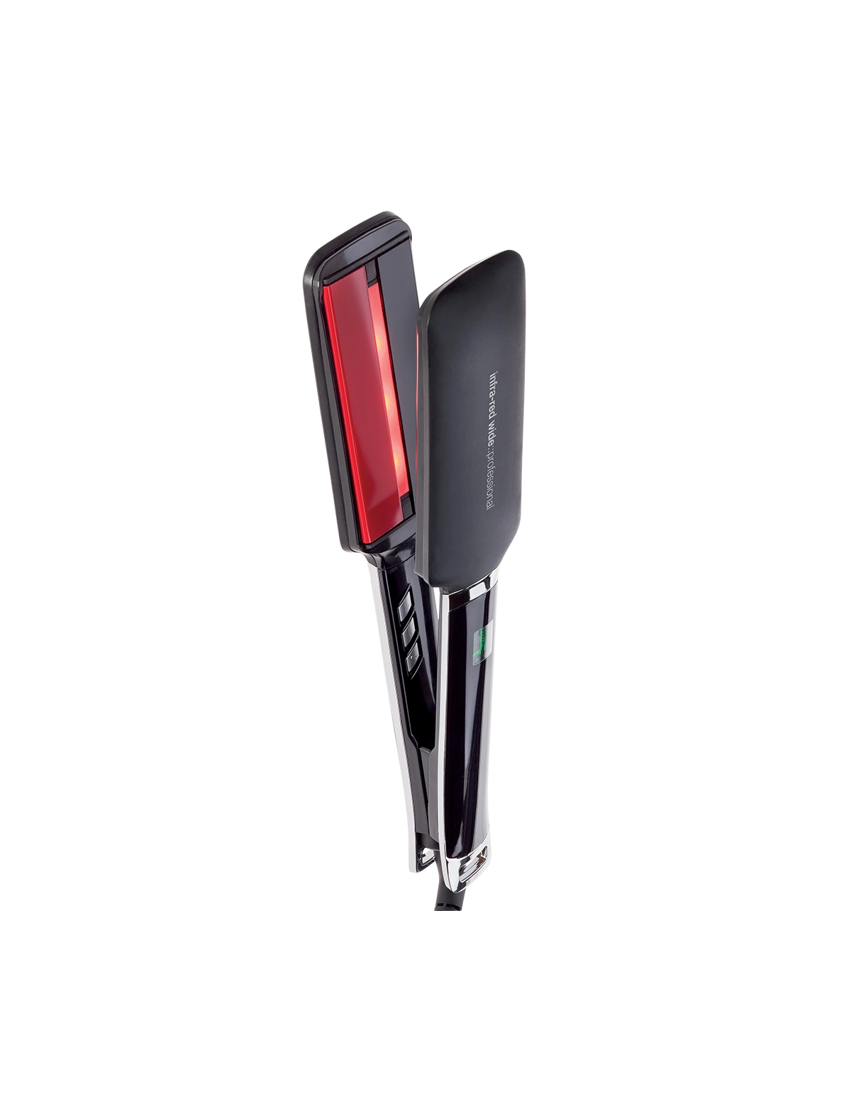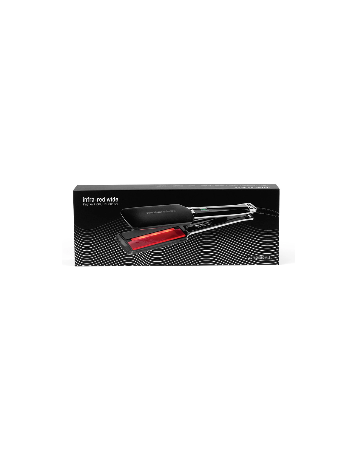 Infra-Red Wide è la piastra professionale a infrarossi con piatti larghi, progettata per parrucchieri e saloni che necessitano di styling rapidi ed efficaci anche su capelli lunghi o folti. Grazie all'azione combinata dei raggi infrarossi e dei piatti ionizzanti —Titanio nella parte superiore e Ceramica Ion Tourmaline nella parte inferiore— la piastra agisce dall'interno del capello, proteggendolo, riequilibrando il cuoio capelluto e contrastando l'effetto crespo.