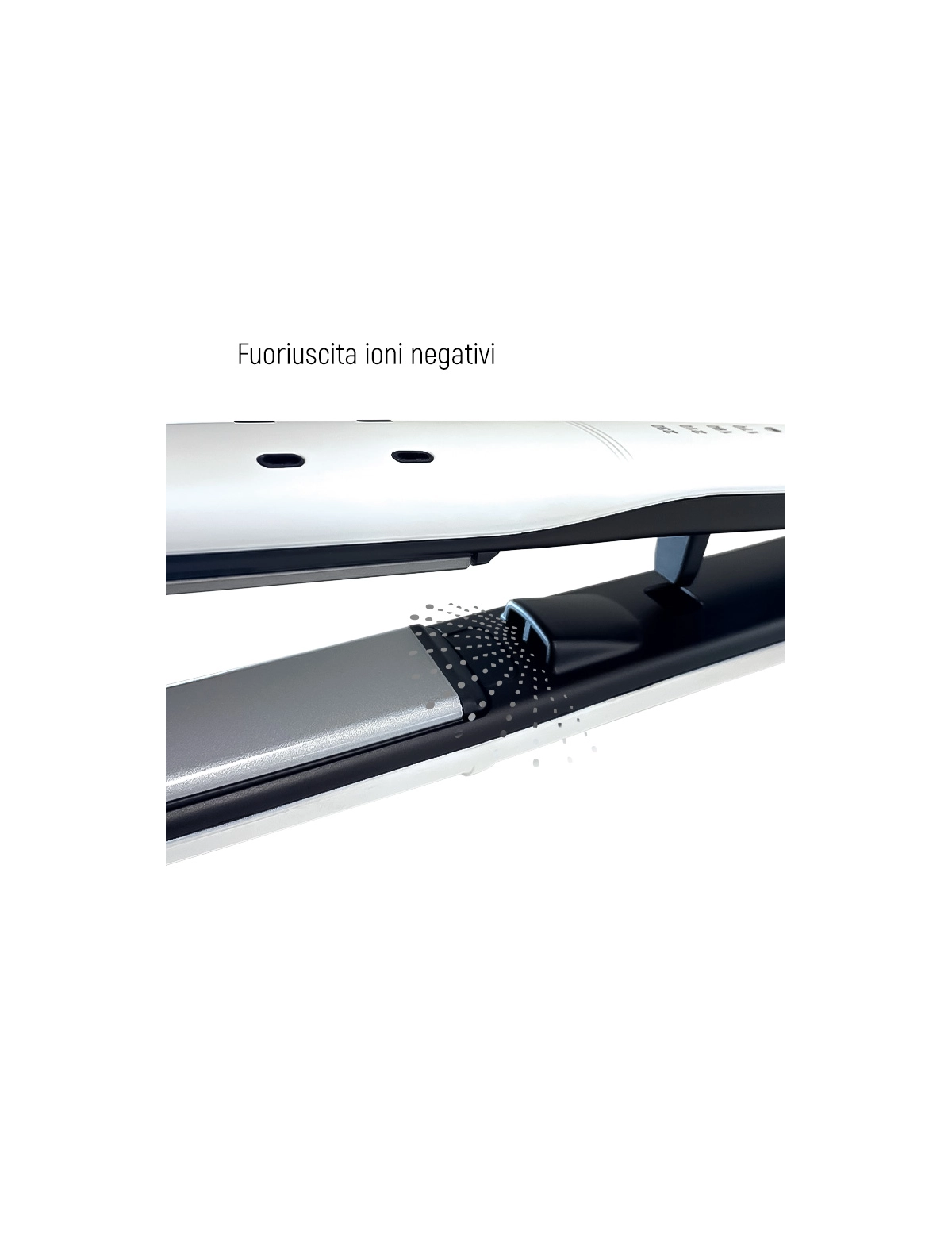 I piatti in ceramica oscillanti garantiscono un calore omogeneo, mentre la tecnologia PTC consente un riscaldamento rapido e stabile. L'emissione di ioni negativi elimina l'effetto crespo, migliorando la texture del capello. Il design stretto e arrotondato rende Absolute perfetta sia per un liscio impeccabile che per onde morbide.