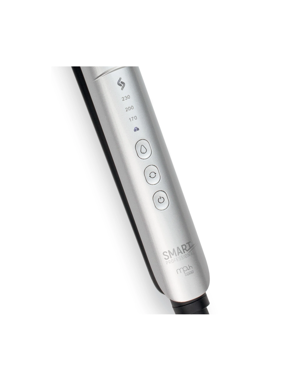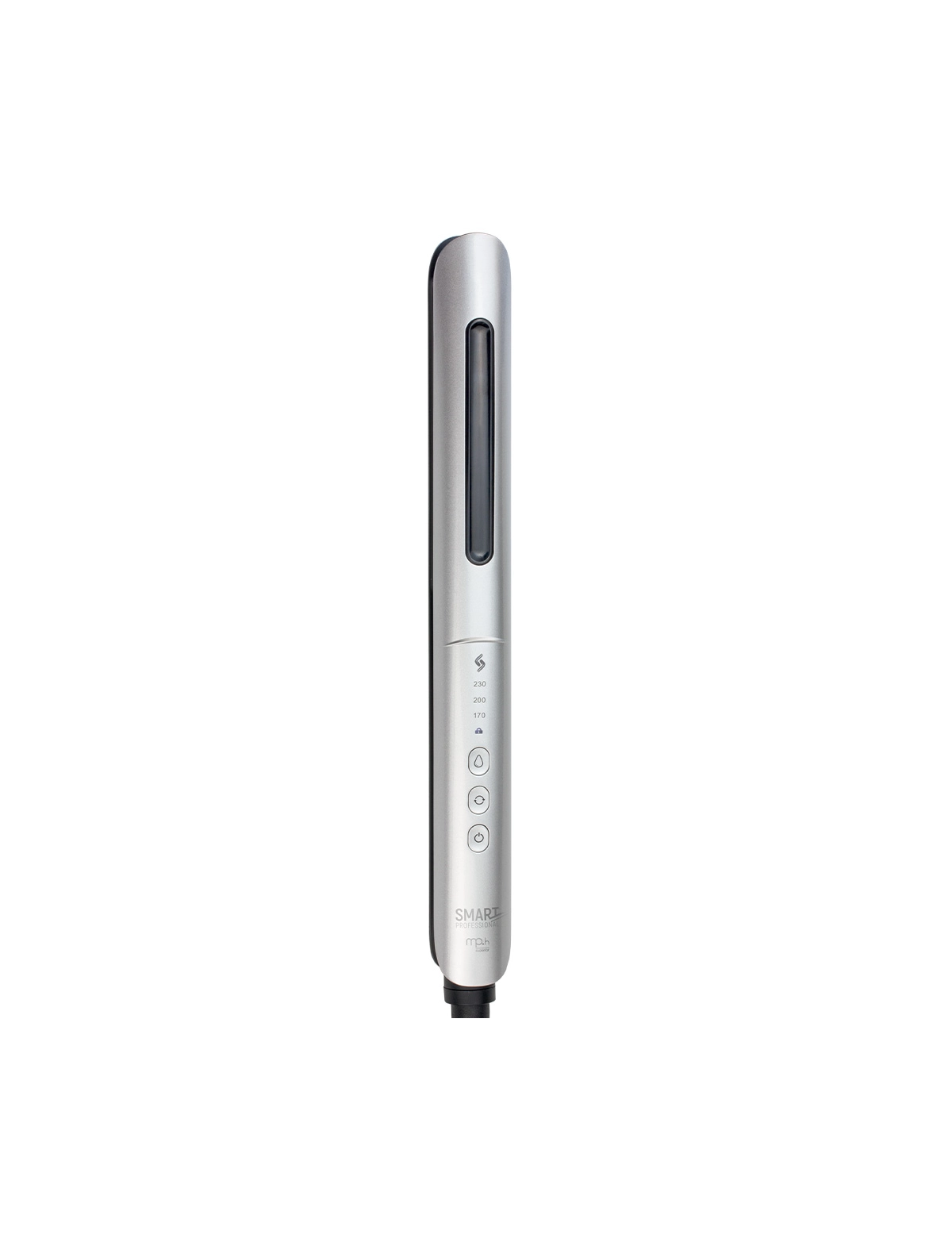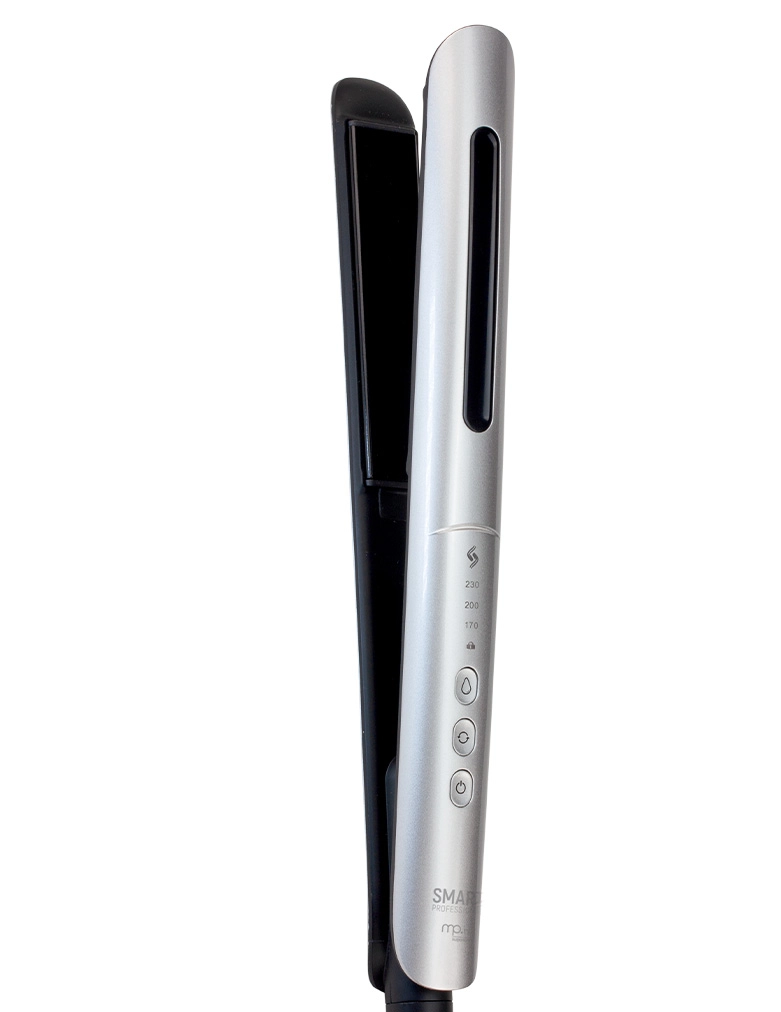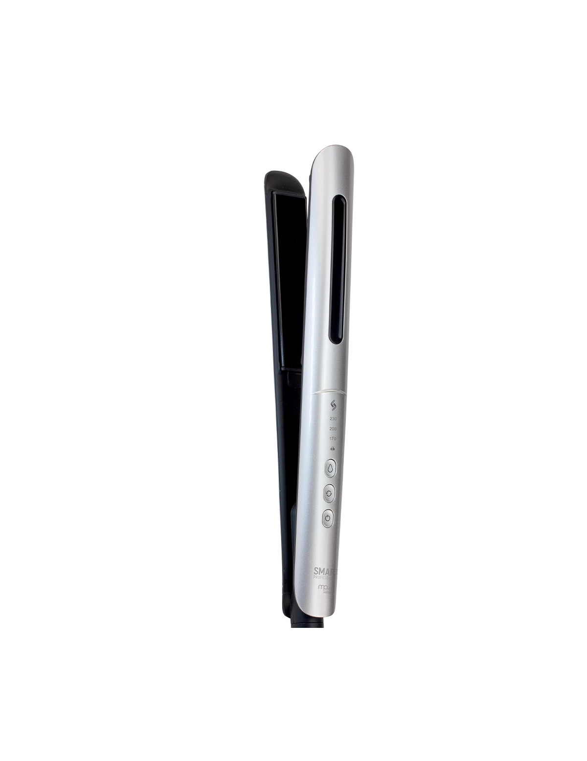 Smart è la piastra professionale per capelli, ideale per saloni e parrucchieri che cercano uno styling impeccabile su capelli asciutti o umidi. Grazie al suo sensore di umidità intelligente, rileva automaticamente il livello di umidità dei capelli bagnati o tamponati, regolando la temperatura ottimale per proteggere la struttura del capello e prevenire i danni da calore.