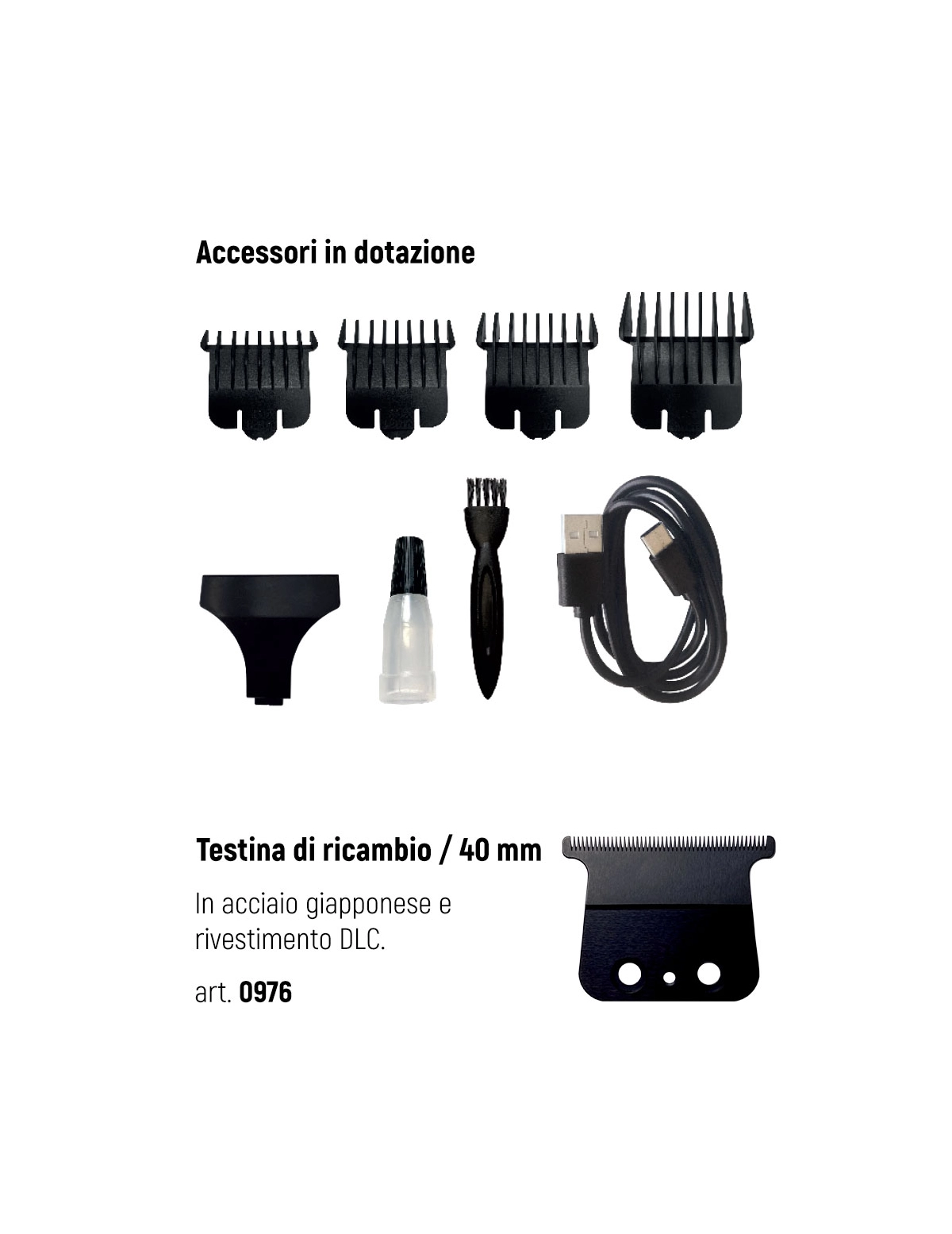 La tosatrice Black T-Zero, parte della linea Master Cut Line, è progettata per chi ama un look estremamente corto e rifiniture creative ad alta precisione. Dotata di una lama DLC in acciaio giapponese 440C con rivestimento in carbonio simile al diamante, offre massima scorrevolezza, precisione e resistenza.