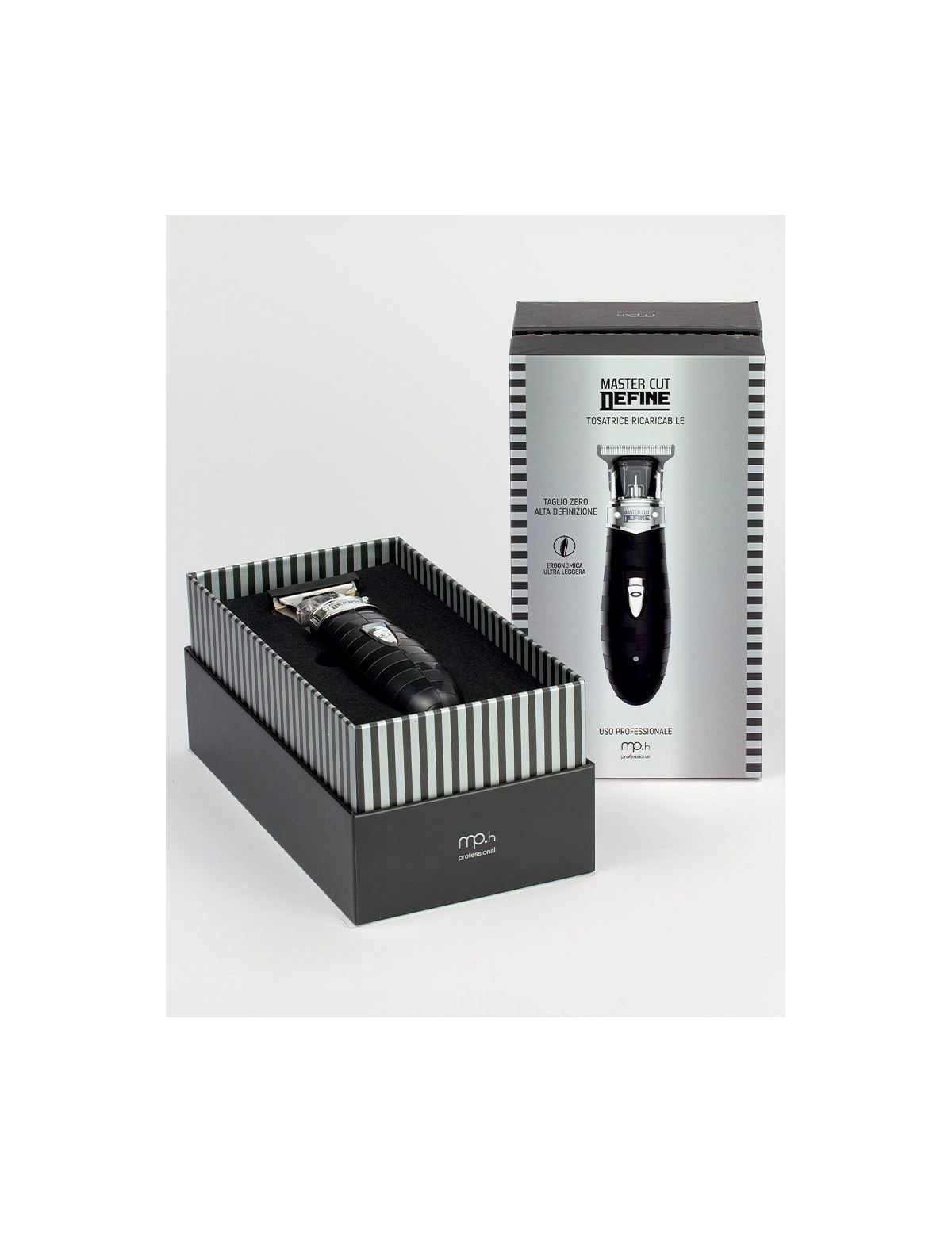 Define è la tosatrice rifinitrice professionale della linea Master Cut Line, ideale per parrucchieri e barber che cercano precisione estrema. Ultra leggera e con design ergonomico innovativo, è dotata di testina in sospensione per una visibilità ottimale durante il taglio. Lo schermo di protezione riduce l'accumulo di polvere e residui di capelli. La lama T-Zero in acciaio inox assicura tagli ultra corti da 0,05 a 0,15 mm, perfetti per disegni e dettagli. Inclusi 3 rialzi per tagli da 1 a 3 mm. Motore potente e silenzioso, batteria al litio per un uso prolungato e senza fili.