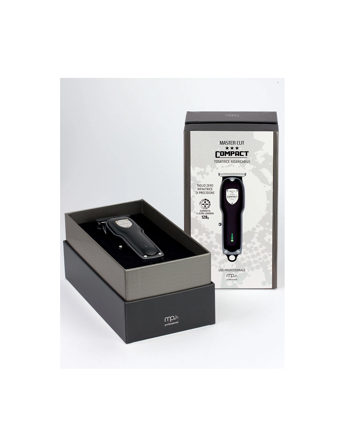 La tosatrice Compact della linea Master Cut Line è pensata per chi desidera tagli precisi e creativi su capelli e barba. Piccola, leggera ed ergonomica, è ideale per l’uso quotidiano e perfetta da portare in viaggio. Il motore DC da 6500 giri/min assicura alte prestazioni e funzionamento silenzioso, mentre la batteria al Litio offre lunga autonomia con spie di carica. La testina removibile a scatto facilita la pulizia. La lama T-Zero in acciaio inox garantisce tagli ultra corti da 0,1 a 0,2 mm, con 3 rialzi per lunghezze da 1 a 3 mm.
