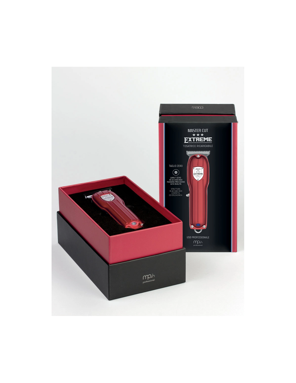 Extreme è la tosatrice e rifinitrice professionale della linea Master Cut Line, pensata per chi ama look cortissimi e dettagli creativi. Compatta e dal design in stile inglese, ha una struttura robusta in acciaio inox e un'impugnatura ergonomica per il massimo comfort. Il motore ad alta velocità e la batteria al litio da 900 mAh garantiscono elevate prestazioni. La lama T-Zero in acciaio inox assicura tagli ultra precisi da 0,1 a 0,2 mm, ideali per rifiniture di precisione. Include 3 rialzi per lunghezze da 1 a 3 mm. La testina removibile a scatto consente una pulizia rapida e accurata.