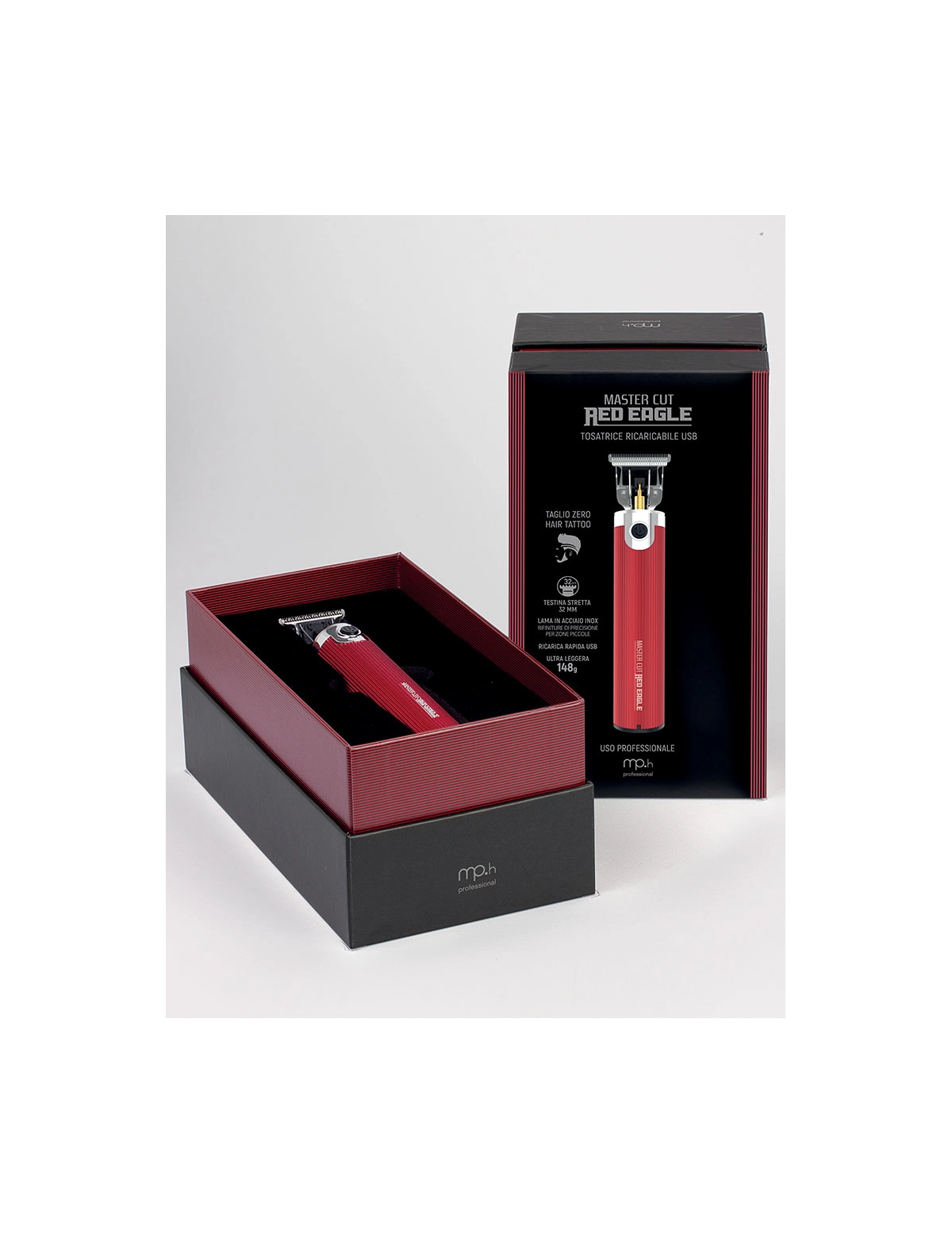 La tosatrice Red Eagle fa parte della linea “Master Cut Line”, un'innovativa collezione di tosatrici professionali pensate per chi ama realizzare tagli ultra corti e rifiniture precise per capelli e barba. Con un design elegante e funzionale, questa tosatrice ultra leggera (148 g) è perfetta per lavori dettagliati e creativi, grazie alla lama T-Zero in acciaio inox che assicura tagli perfetti anche nelle zone più difficili da raggiungere. L'autonomia di 7 ore e la batteria al Litio ricaricabile tramite cavo USB offrono praticità e libertà di utilizzo, rendendola ideale per un utilizzo cordless ovunque. La testina stretta consente anche di creare disegni creativi "hair tattoo", mentre il design sospeso facilita la visibilità durante la rifinitura di barba e capelli.